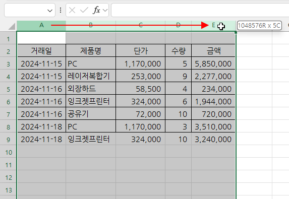 데이터를 추가할 때 마다 표 테두리를 연장해줘야 하는 것은 번거로운 일이죠!