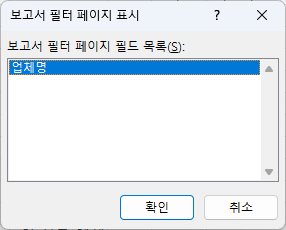 [보고서 필터 페이지 표시]가 실행되면 업체명이 보이죠?