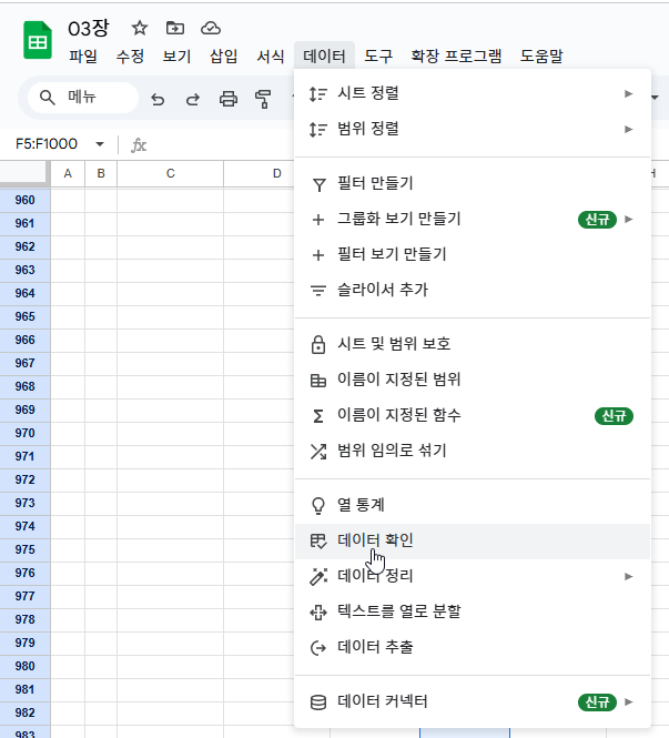 | 구글 스프레드시트] 효율적인 데이터 작업을 위한 3가지 기능 | 틀 고정, 중복 데이터 삭제, 조건부 서식 (0) | 2025.02.12 |