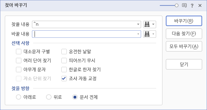 <Ctrl + H>를 눌러 [찾아 바꾸기] 대화상자를 표시합니다.