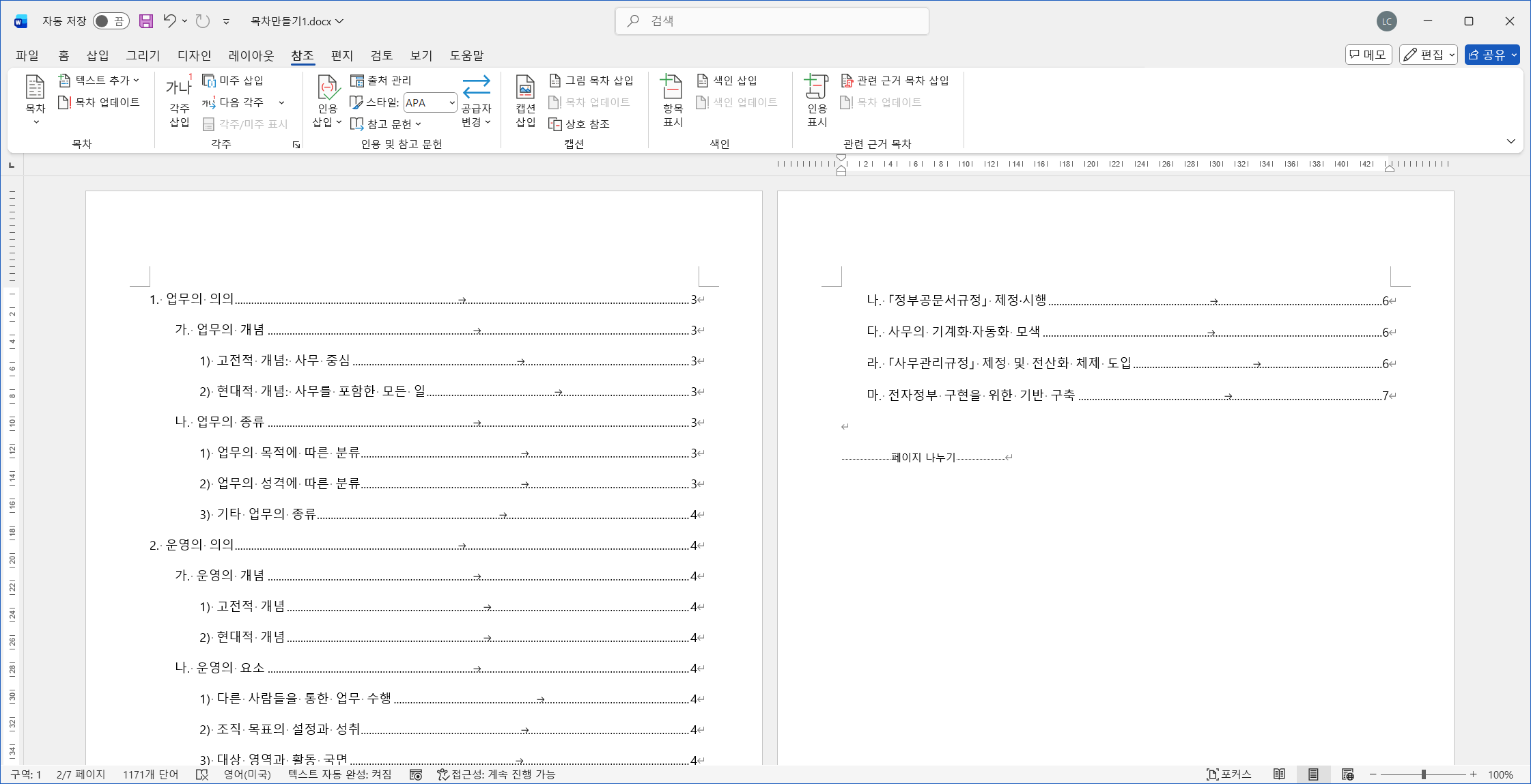 목차 만드는 방법에 대해서 소개합니다.