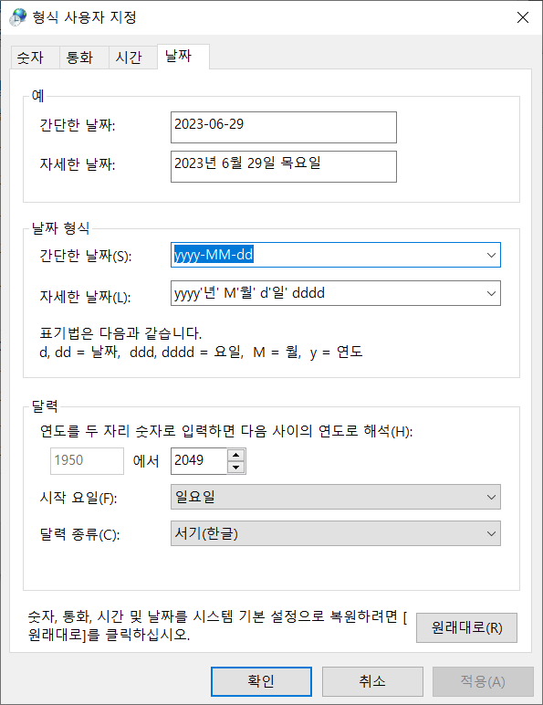 '간단한 날짜' 항목을 yyyy.MM.dd로 변경했습니다.