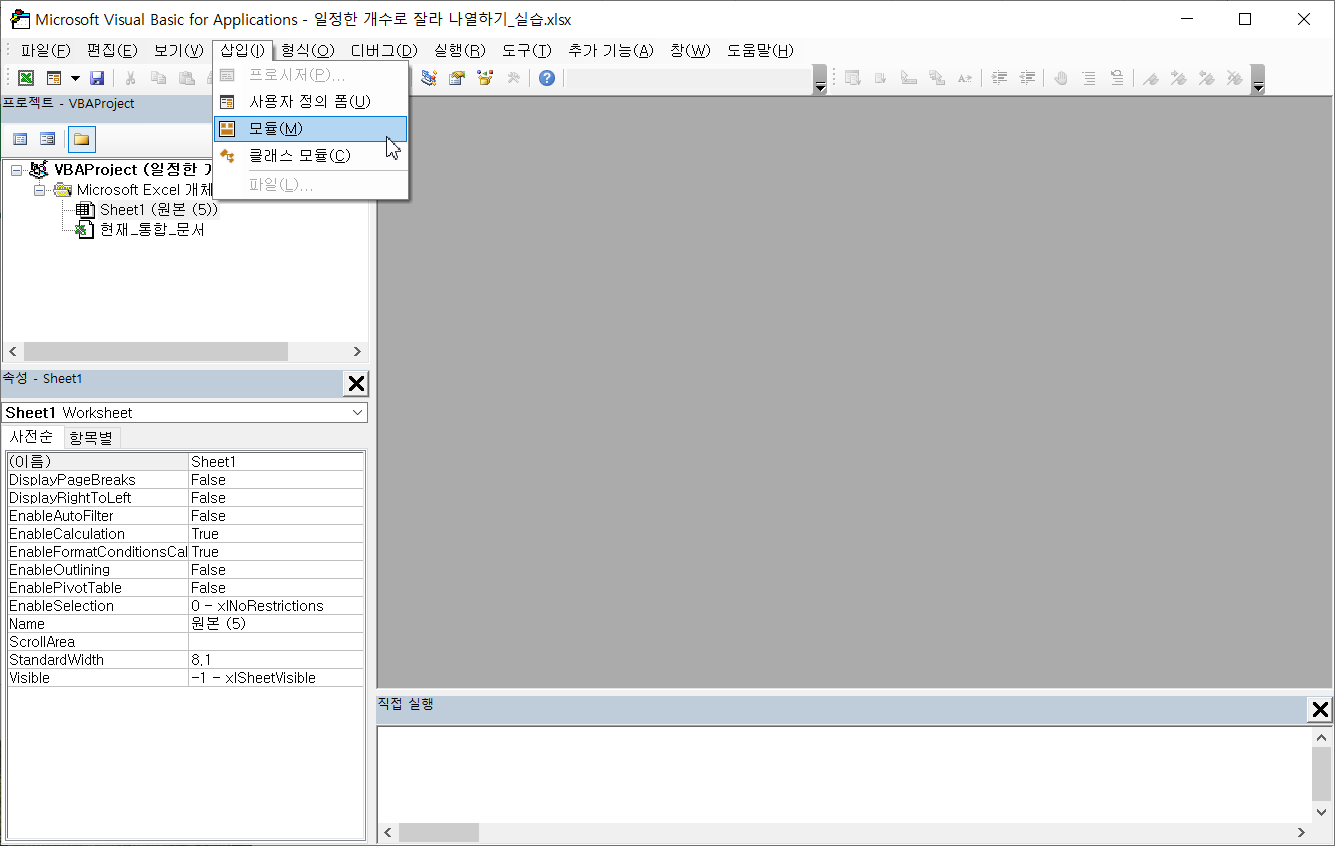 <Alt + F11>을 눌러 VBE를 실행합니다.