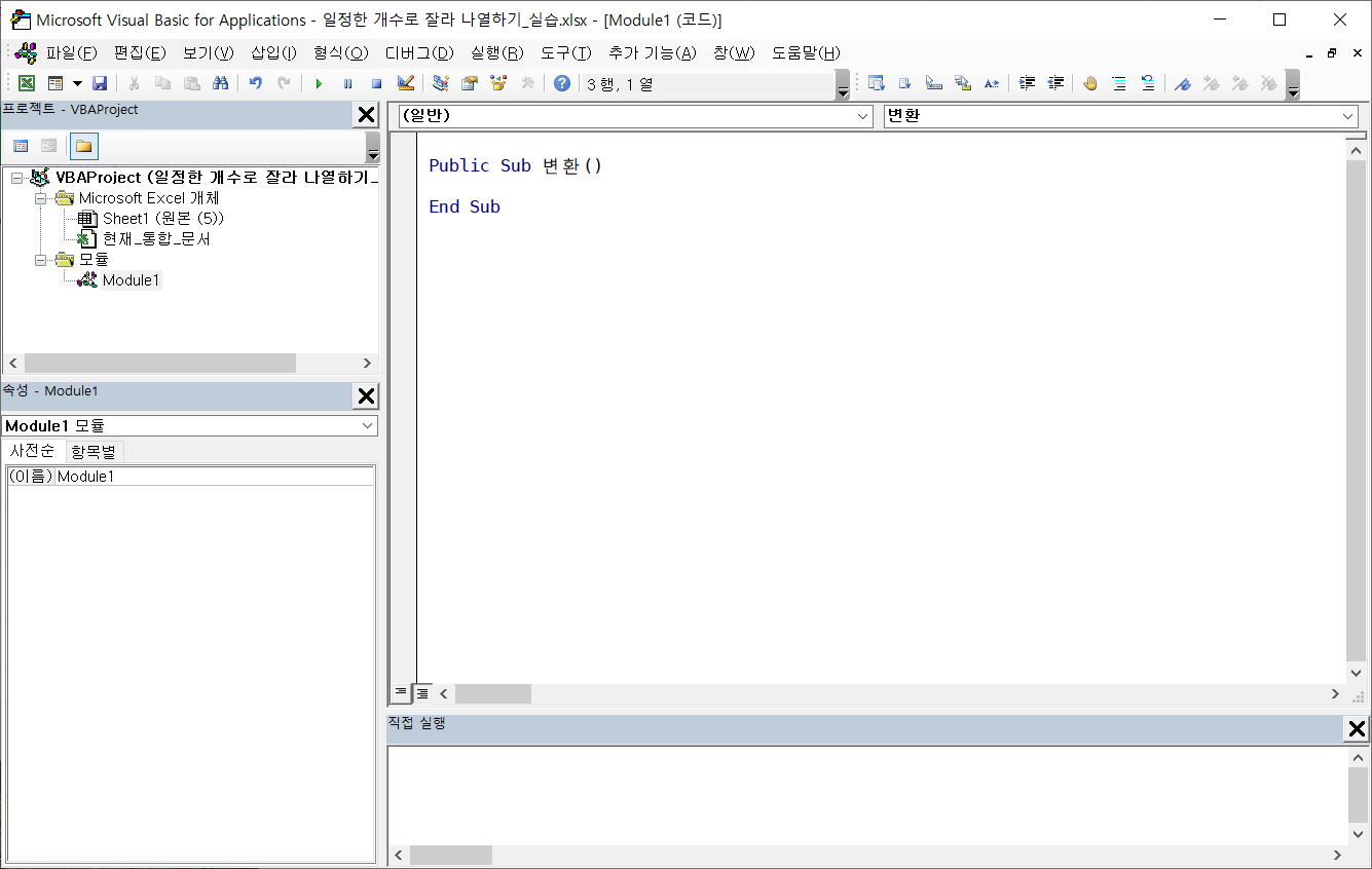<Alt + F11>을 누르면 엑셀 창으로 전환되어 실행된 결과를 확인할 수 있습니다.