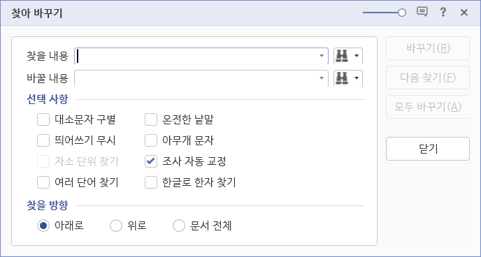 한글 [찾기] 기능에는 조건식을 설정할 수 있는 선택 사항이 있습니다.