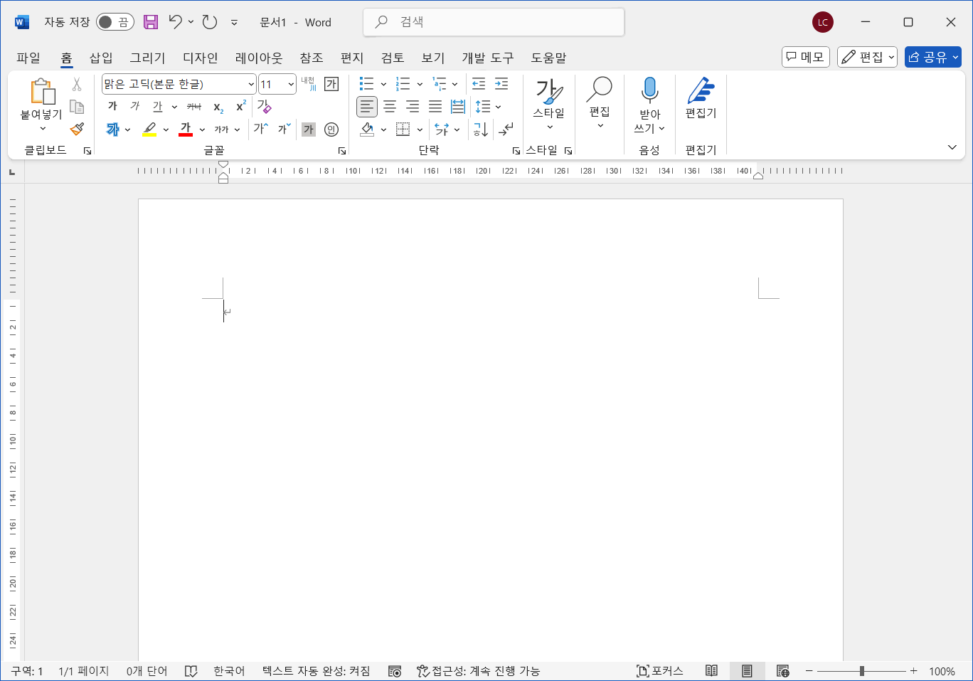 [보기]-[인쇄 모양]을 선택하면 페이지의 여백을 나타내는 기호를 확인할 수 있습니다.