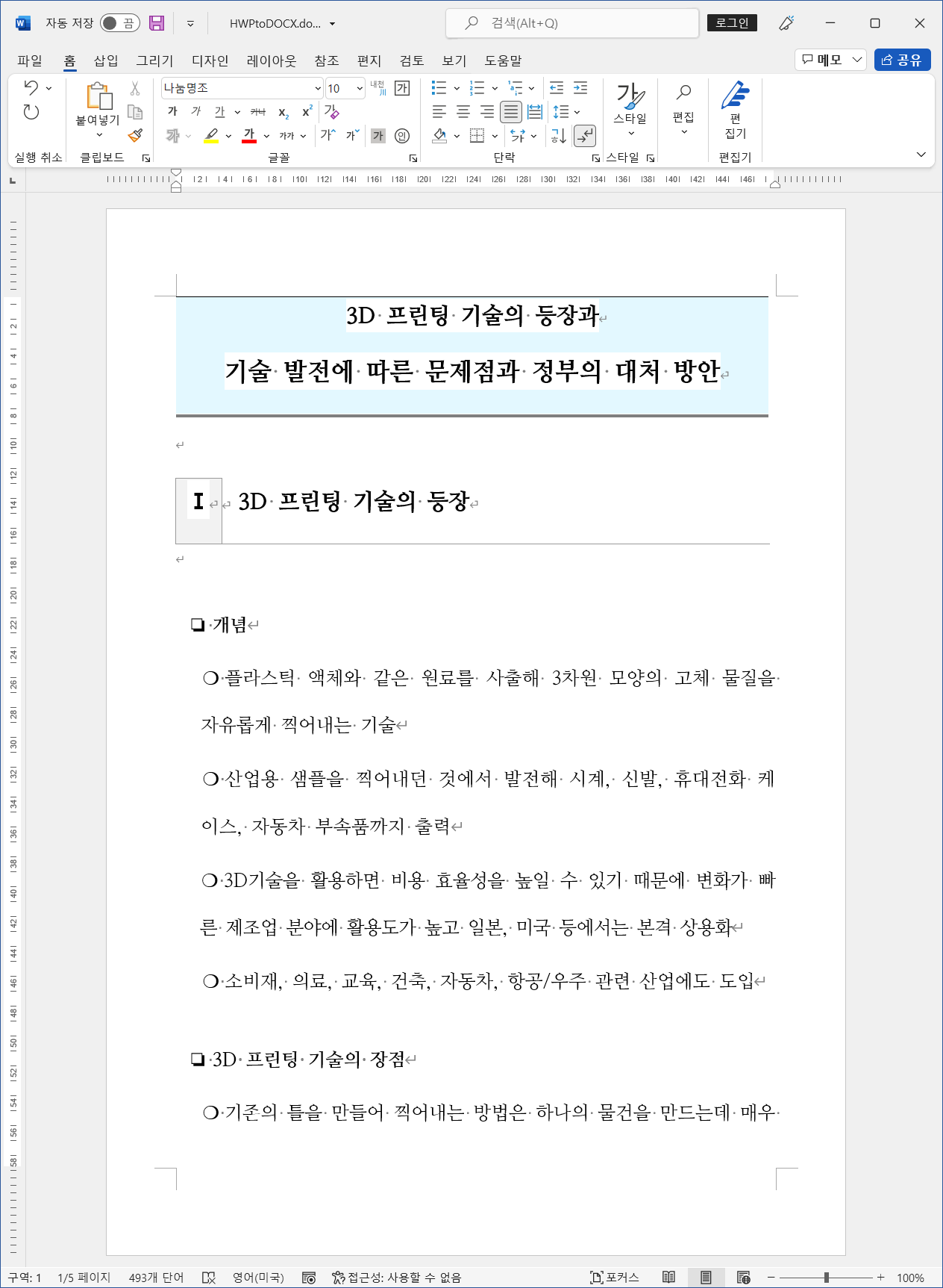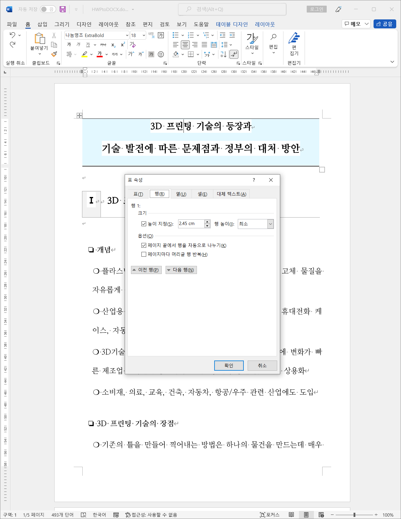 그리고 한글 문서를 워드로 바꿀 때 주의해야할 항목이 있습니다.