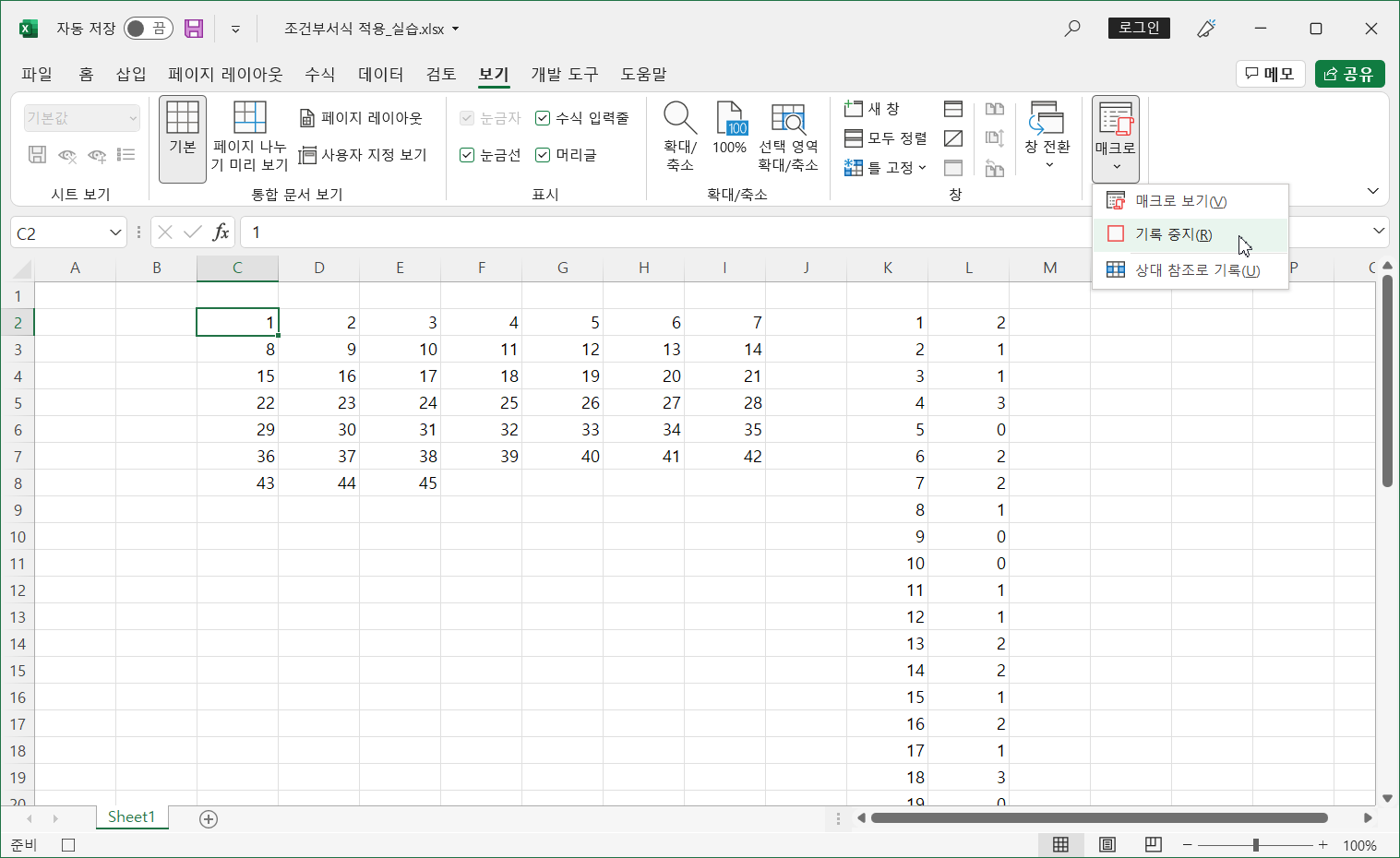 [보기]-[매크로]-[기록 중지]를 선택합니다.