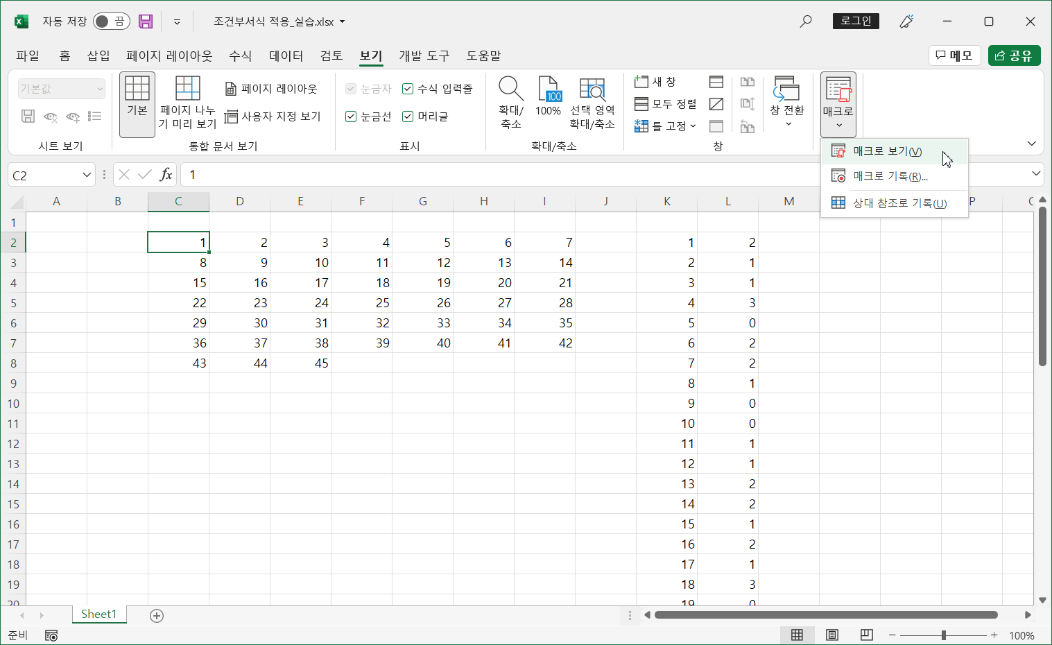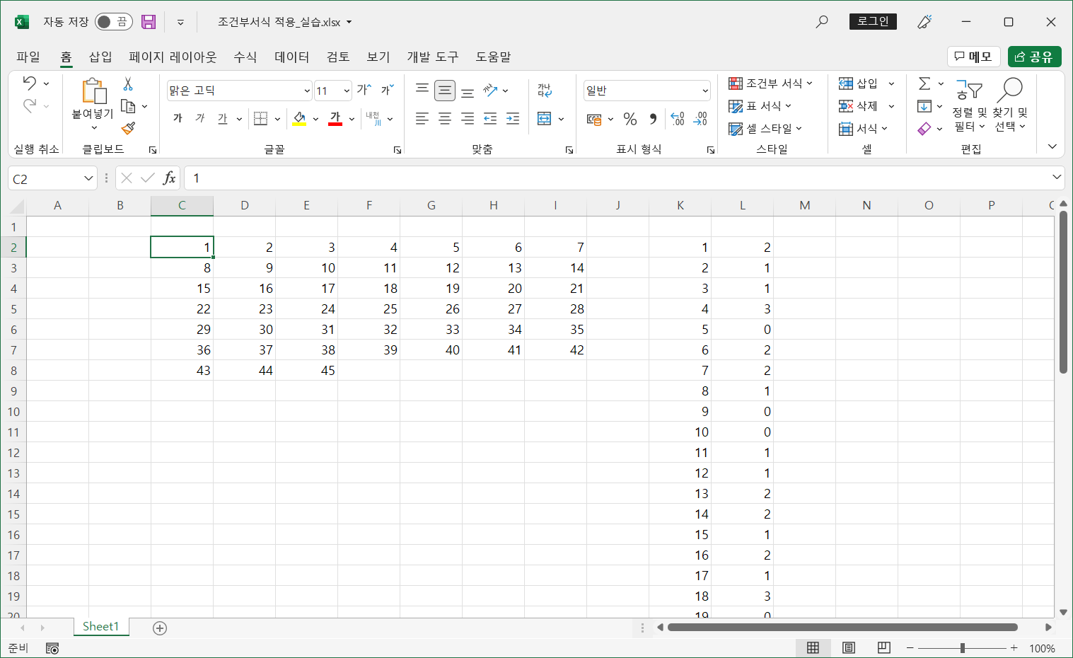[C2] 셀 값인 1인 경우 [L2] 셀
