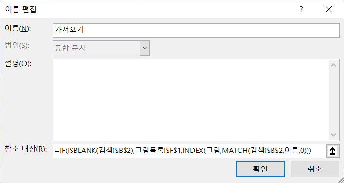 =IF(ISBLANK(검색!$B$2),그림목록!$F$1,INDEX(그림,MATCH(검색!$B$2,이름,0)))