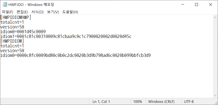 HWP.IDO 파일은 텍스트 파일로 메모장으로 열어볼 수 있습니다.