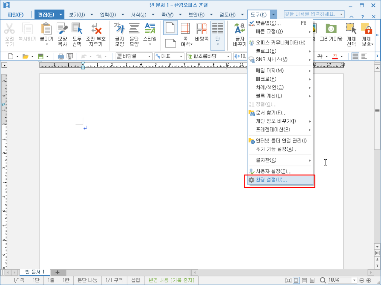 [도구]-[환경 설정]을 선택합니다.
