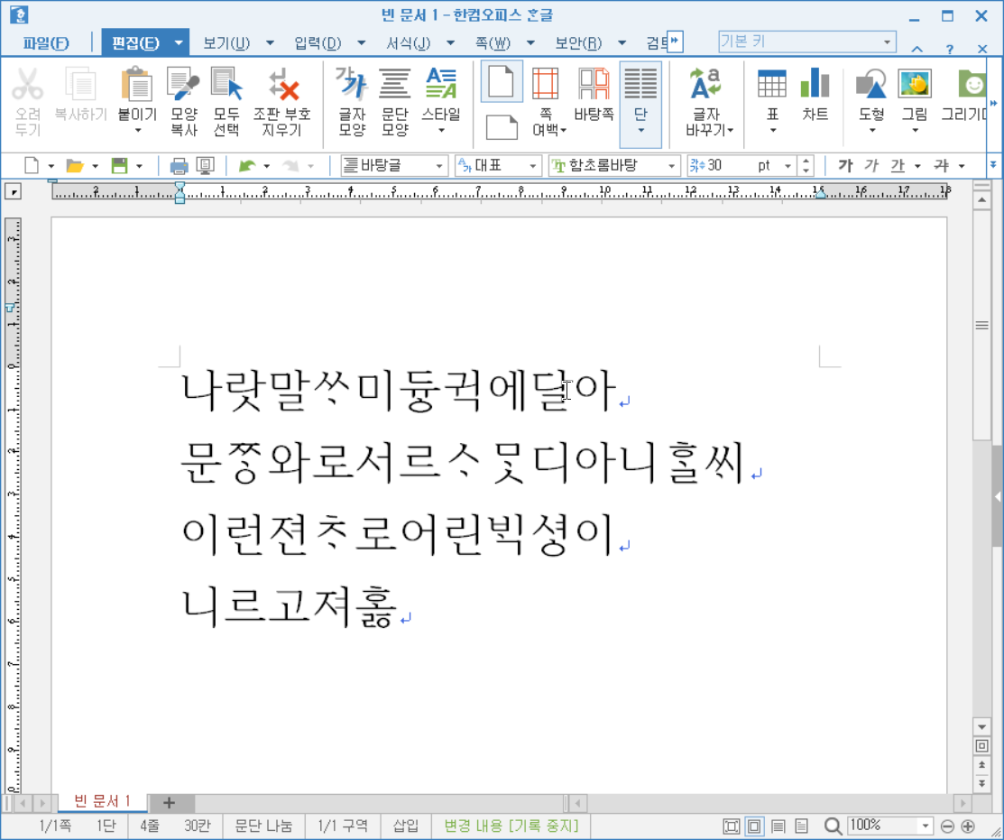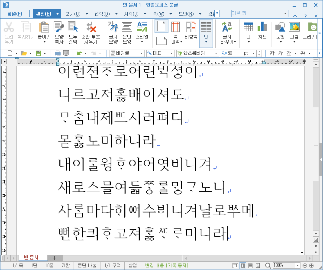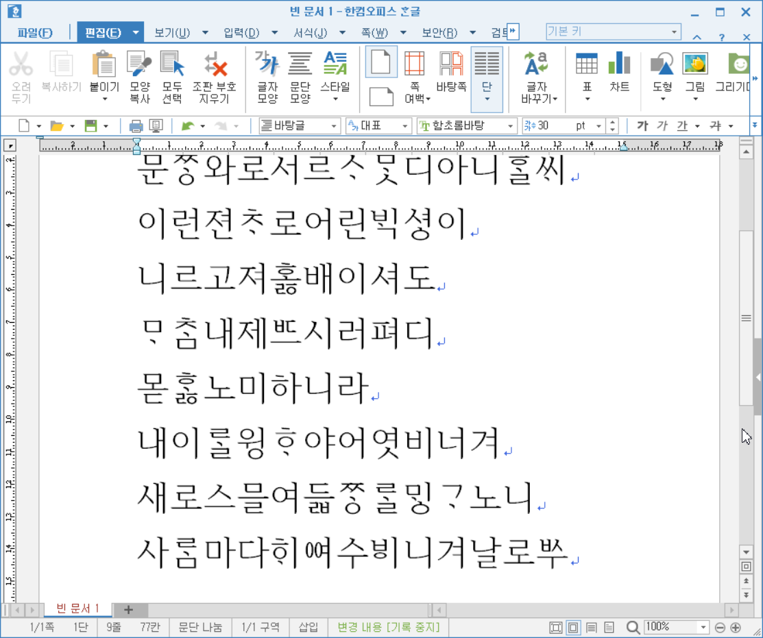 '훈민정음 어제 서문'을 모두 입력했습니다.