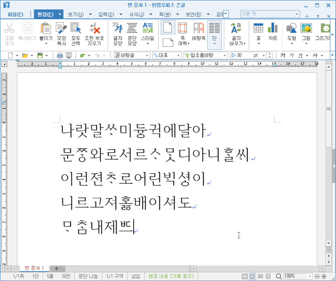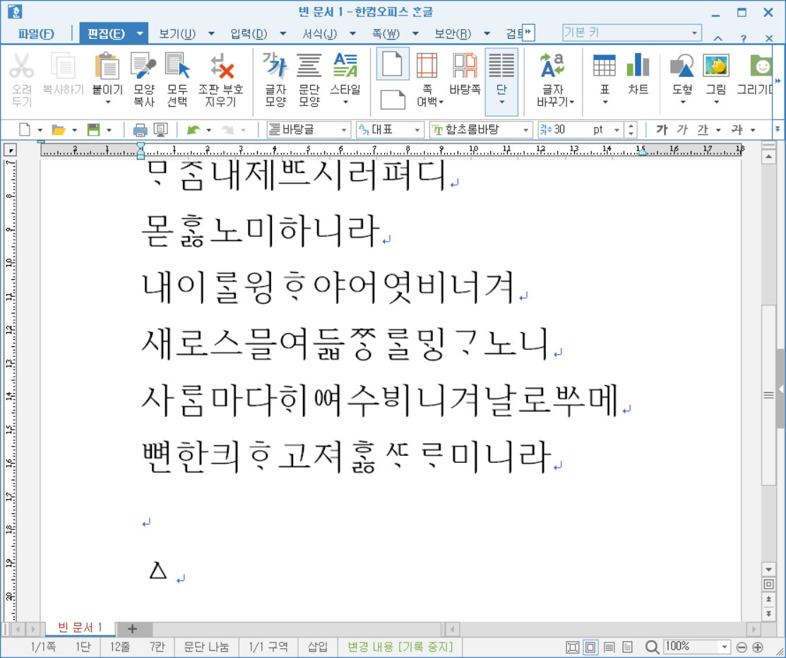 '나랏말ᄊᆞ미'까지는 그냥 입력할 수 있습니다.