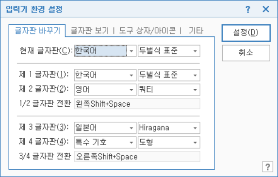<Alt + F2>를 눌러 [입력기 환경 설정] 창을 나타냅니다.