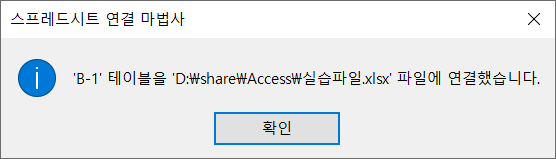 '연결 테이블 이름'은 시트 이름인 'B-1'을 그대로 두고 [마침]을 클릭합니다.