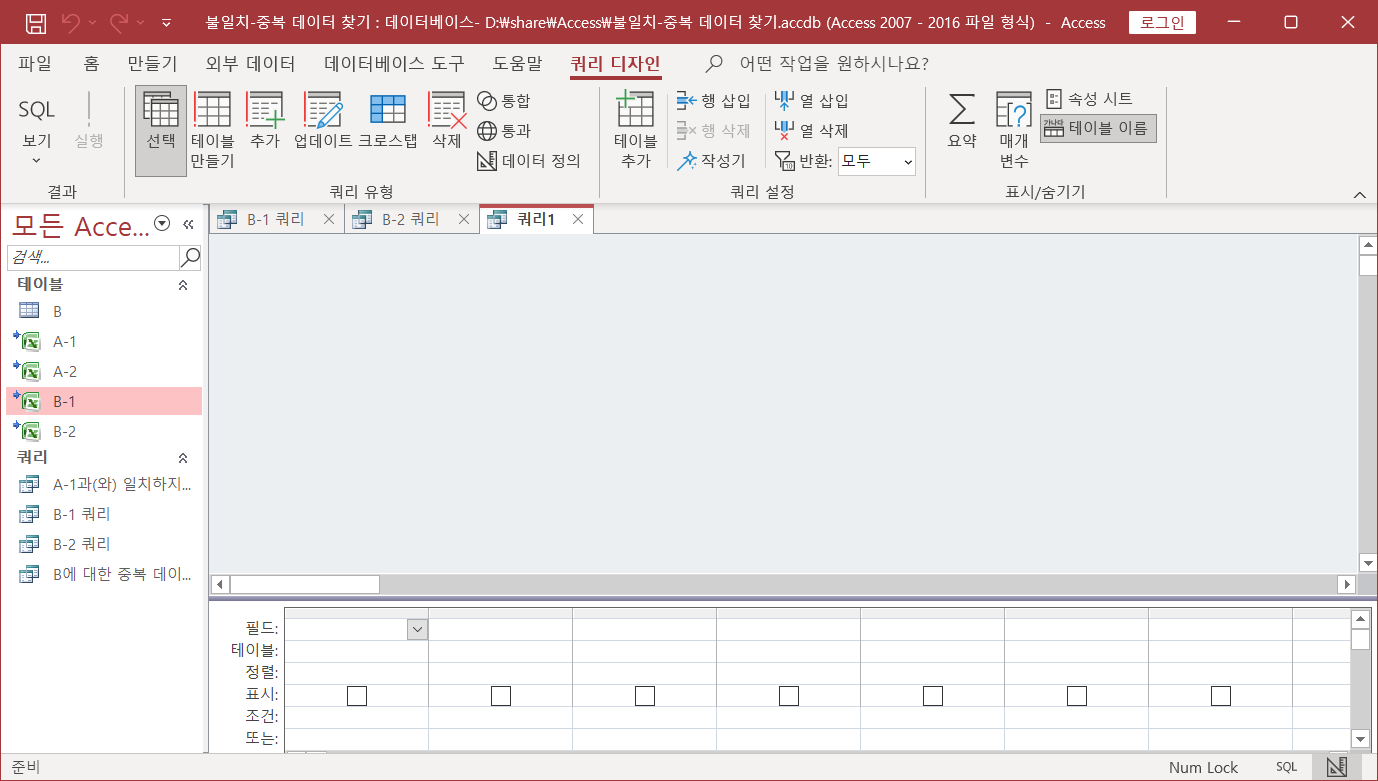 같은 방법으로 'B-2 쿼리'를 만듭니다.