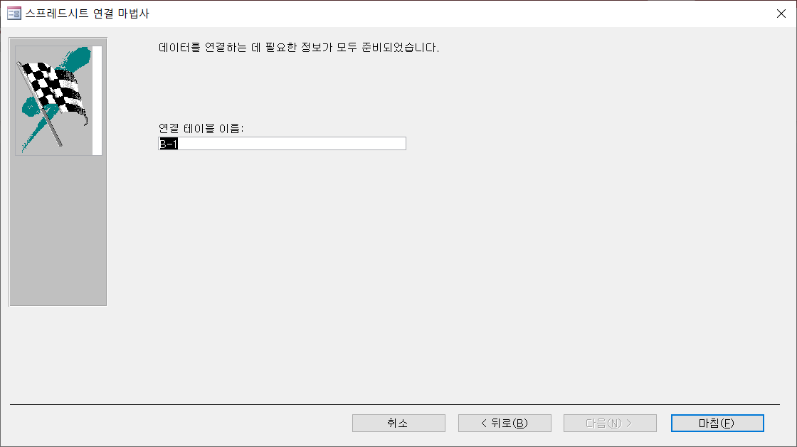 '연결 테이블 이름'은 시트 이름인 'B-1'을 그대로 두고 [마침]을 클릭합니다.