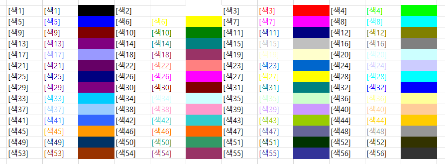 색상을 나타낼 때는 대괄호로 묶어서 나타냅니다.