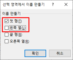 [왼쪽 열] 체크는 해제하고 [첫 행]만 체크된 상태에서 [확인]을 누릅니다.