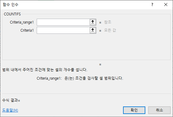 단축키 <Shift + F3>을 눌러 함수 인수 대화상자를 나타냅니다.