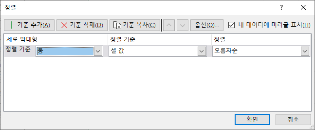 [확인]을 누르면 사용자 지정 목록 기준으로 정렬이 실행됩니다.
