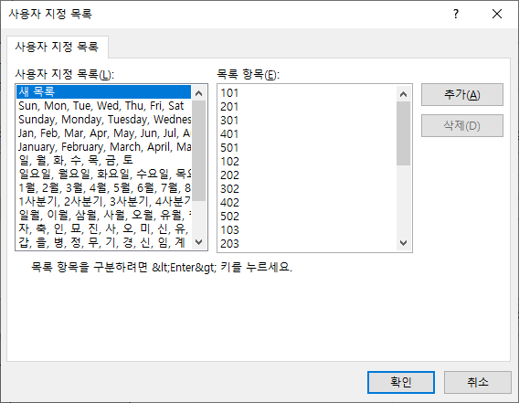 귀찮은 일이지만 엑셀에게 어떤 순서대로 정렬해야할 지 알리기 위해 원하는 정렬 순서대로 모두 입력합니다.