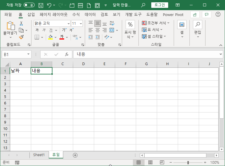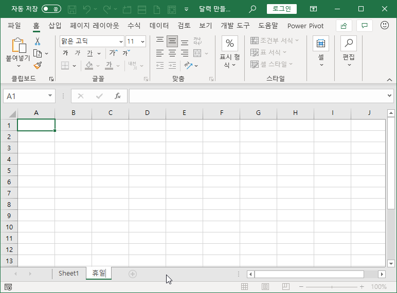 새 시트를 추가해 시트명을 '휴일'로 지정합니다.