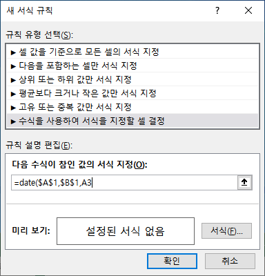 날짜를 추가로 넣고 싶다면 똑같은 방법으로 같은 셀 범위에 조건부 서식을 한 번 더 넣습니다.