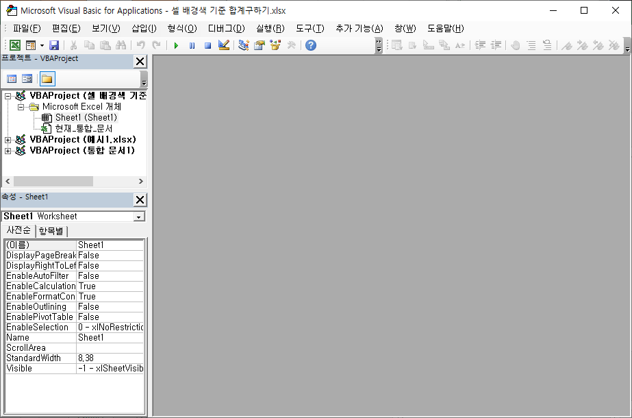 단축키 <Alt + F11>을 눌러 VBA 편집기를 실행합니다.