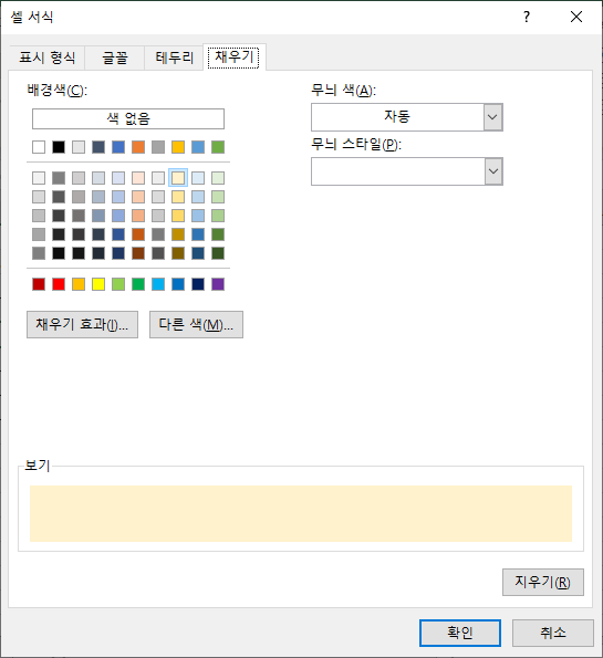 특정 조건일 때 셀 서식을 바꾸려면 조건부 서식 기능을 이용해야 합니다.