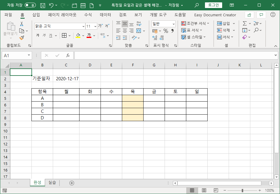 완성 시트에 조건부 서식을 작성해 두었습니다.