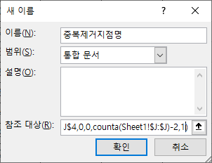 이미 등록되어 있는 이름은 앞에서 고급 필터 기능을 쓸 때 자동으로 만들어진 이름인데 동작하는 부분과는 상관 없기 때문에 무시합니다.