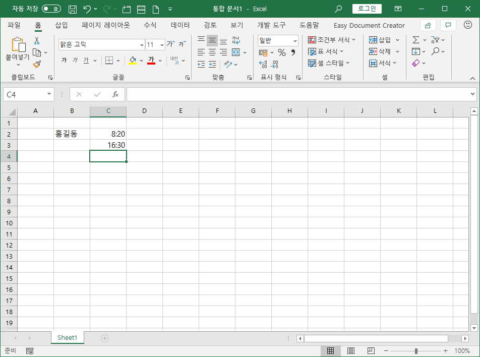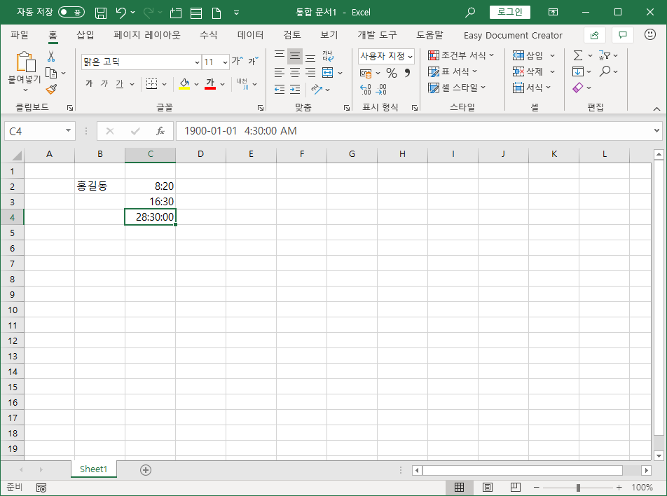 [C4] 셀에 1일 4시간 30분에 해당하는 시간을 입력하겠습니다.