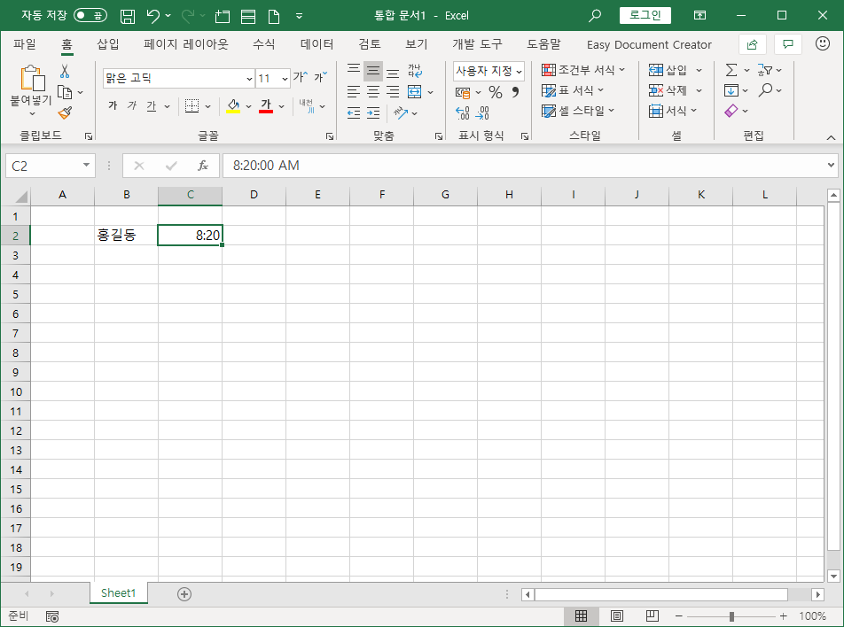 [C2] 셀에 입력한 8시 20분을 숫자로 나타내 보겠습니다.
