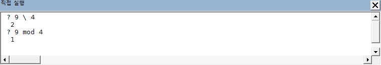 9 \ 4는 2이 결과값으로 나오고, 9 Mod 4는 1이 결과값으로 나옵니다.