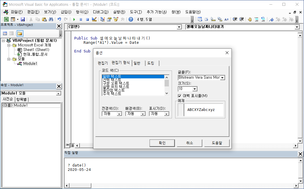 바로 VBE에서 사용할 글꼴을 프로그래밍용 글꼴로 바꾸는 작업입니다.