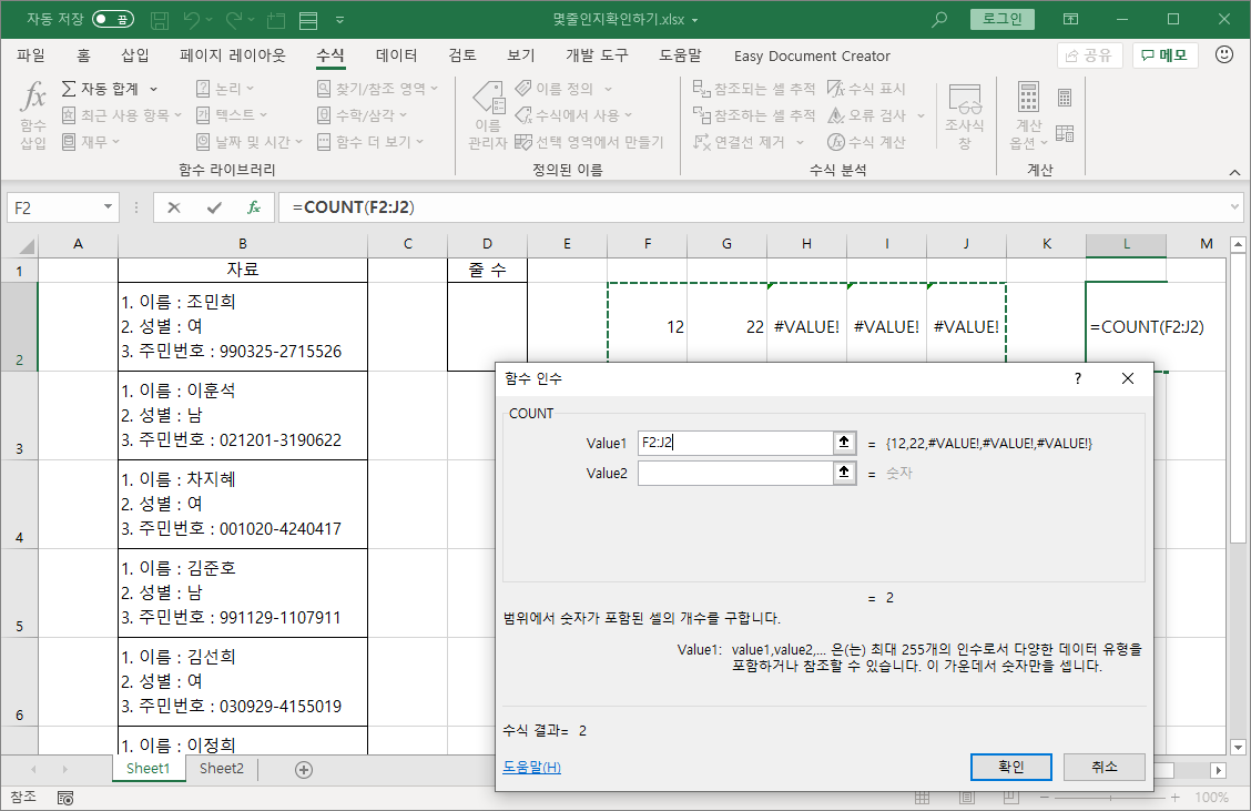 | 한 셀에 몇 줄이 입력되었는지 확인(CHAR, SUBSTITUTE 함수) (3) | 2020.05.15 |