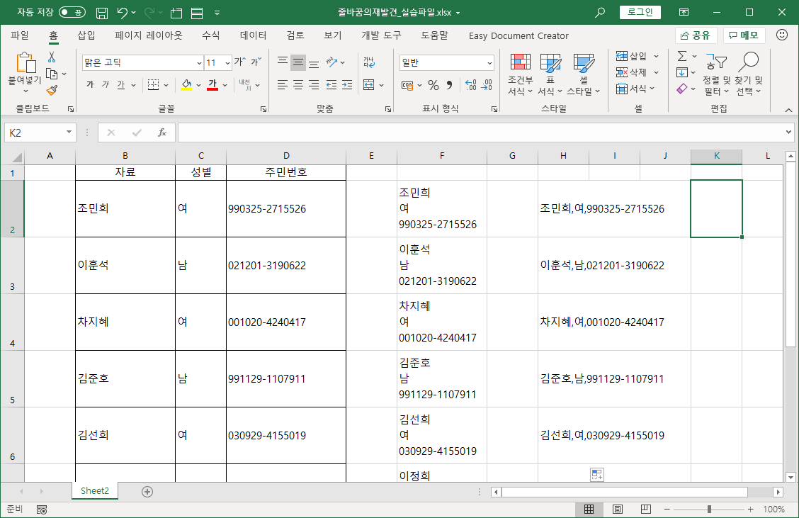 엑셀의 기능과 함수를 이용해 한 셀에 입력된 데이터를 여러 셀로 나누거나 다시 한 셀로 바꾸는 방법을 소개하겠습니다.