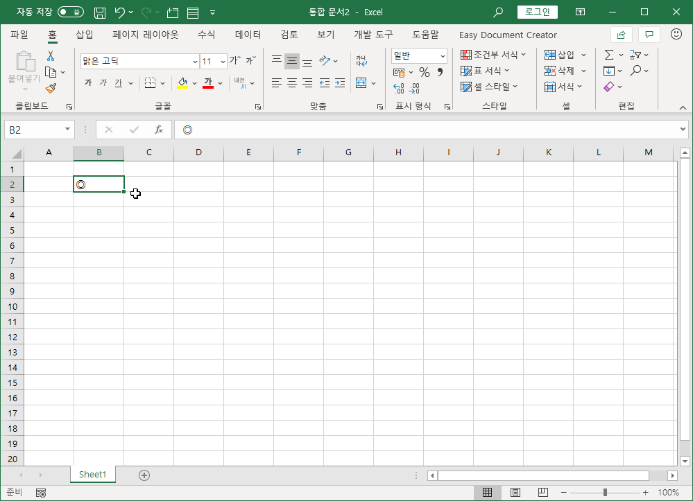 도형을 삽입할 셀을 선택하고, 왼쪽 <Alt>키를 누르고 있는 상태에서 키보드 오른쪽 숫자판에 있는 4, 1, 4, 3, 7을 순서대로 입력한 뒤 <Alt>키에서 손을 뗍니다.