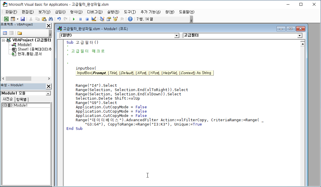 이 강좌는 이전 고급 필터 매크로를 학습하셔야 흐름을 이해할 수 있습니다.