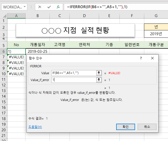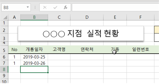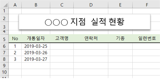 개통일자 별로 실적을 정리 하고 있는데 개통 일자를 입력하면 일련번호(No)가 자동으로 입력되도록 해보겠습니다.