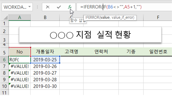 이번 강좌는 IFERROR, IF 함수를 활용하여 데이터를 입력하면 자동으로 일련번호(No)가 매겨지는 수식을 작성해 보겠습니다.