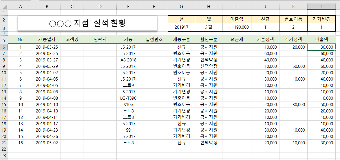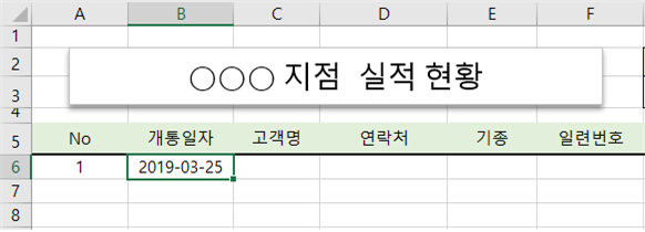 개통일자 별로 실적을 정리 하고 있는데 개통 일자를 입력하면 일련번호(No)가 자동으로 입력되도록 해보겠습니다.