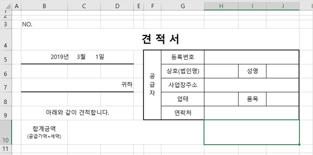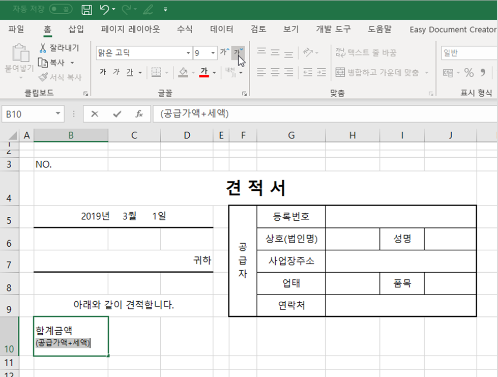 이번 강좌는 지난 시간에 이어 두번째 양식, 견적서 만들기 차례입니다.
