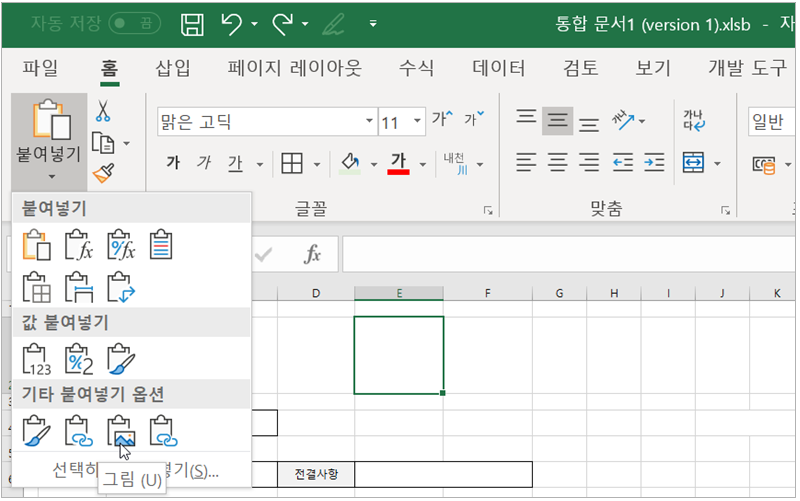 9. 이런 경우 일반적인 붙여넣기 방식이 아닌 그림으로 붙여넣기 방법을 사용해야 합니다.