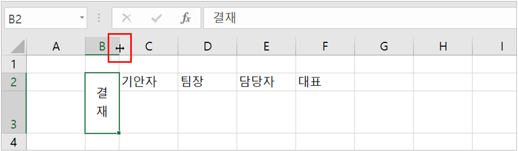 4. [B] 열 너비를 좁혀 아래와 같은 모양이 되도록 설정합니다.