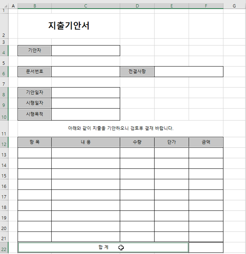 아래 완성된 양식은 ‘지출기안서’입니다.