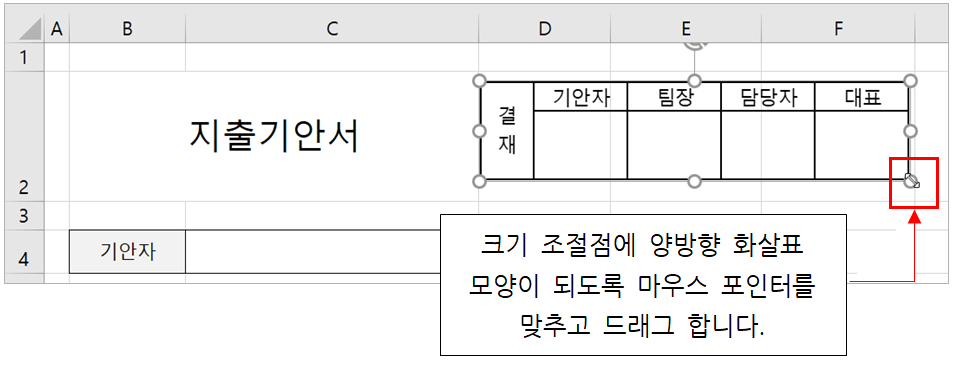 10. 그림으로 삽입된 결재양식을 보기 좋게 크기를 변경합니다.