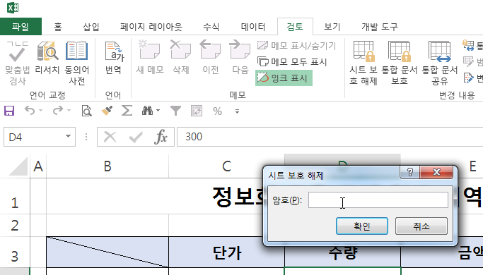 | 시트 보호 해제